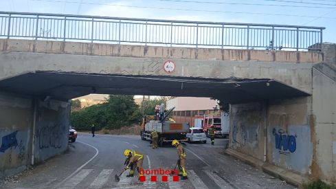 Los Bomberos de la Generalitat han enviado **cinco dotaciones** al punto afectado y han procedido a sanear la zona, solicitando el corte inmediato de la circulación ferroviaria mientras un técnico especializado revisa la estructura del puente. En el operativo también participa el Grupo de Estructuras Colapsadas (GREC), que asesora sobre posibles daños y riesgos.