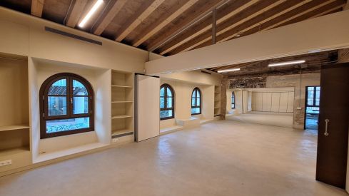 El proyecto ha consistido en la adaptación de los interiores para adecuarlos a usos vinculados al casal. Entre las actuaciones principales destaca el derribo parcial de las medianeras existentes para permitir la conexión física entre la nave nueva y la ya existente, así como la unificación de los accesos en la planta baja. También se ha resuelto el desnivel entre plantas mediante una solera plana en la base.