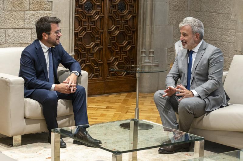 El alcalde de Barcelona, Jaume Collboni, y el presidente de la Generalitat, Pere Aragonès, han mantenido esta tarde la primera reunión institucional en el Palau de la Generalitat. El encuentro, que ha durado 1 hora y cuarto, ha tenido lugar en la sala de los Diputados y ha servido para acordar la reanudación de las reuniones de la Comisión Mixta Generalitat-Ayuntamiento de Barcelona, una vez constituido el nuevo consistorio. La próxima reunión tendrá lugar el próximo 20 de octubre.