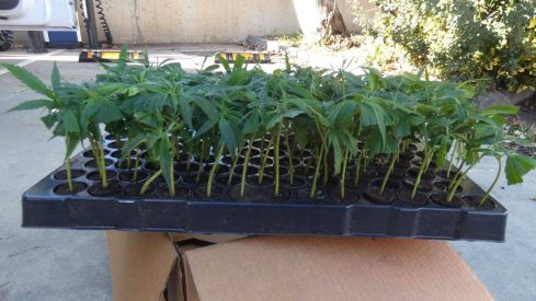 En el registro de la furgoneta encontraron, nada menos, 1.140 plantones de marihuana preparados para ser trasplantados, además de varios utensilios para su cultivo