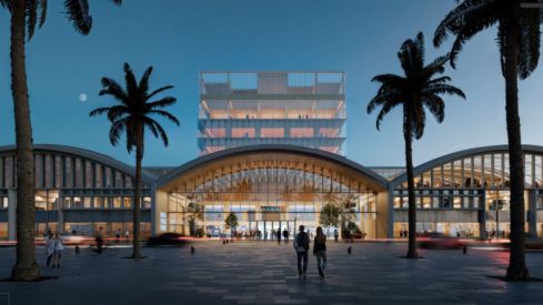 El edificio mantendrá la estructura en pórtico de las seis naves originales de los antiguos almacenes y preservará las fachadas existentes, combinando su restauración con el uso de materiales de baja huella de carbono, como la madera o componentes reciclados.