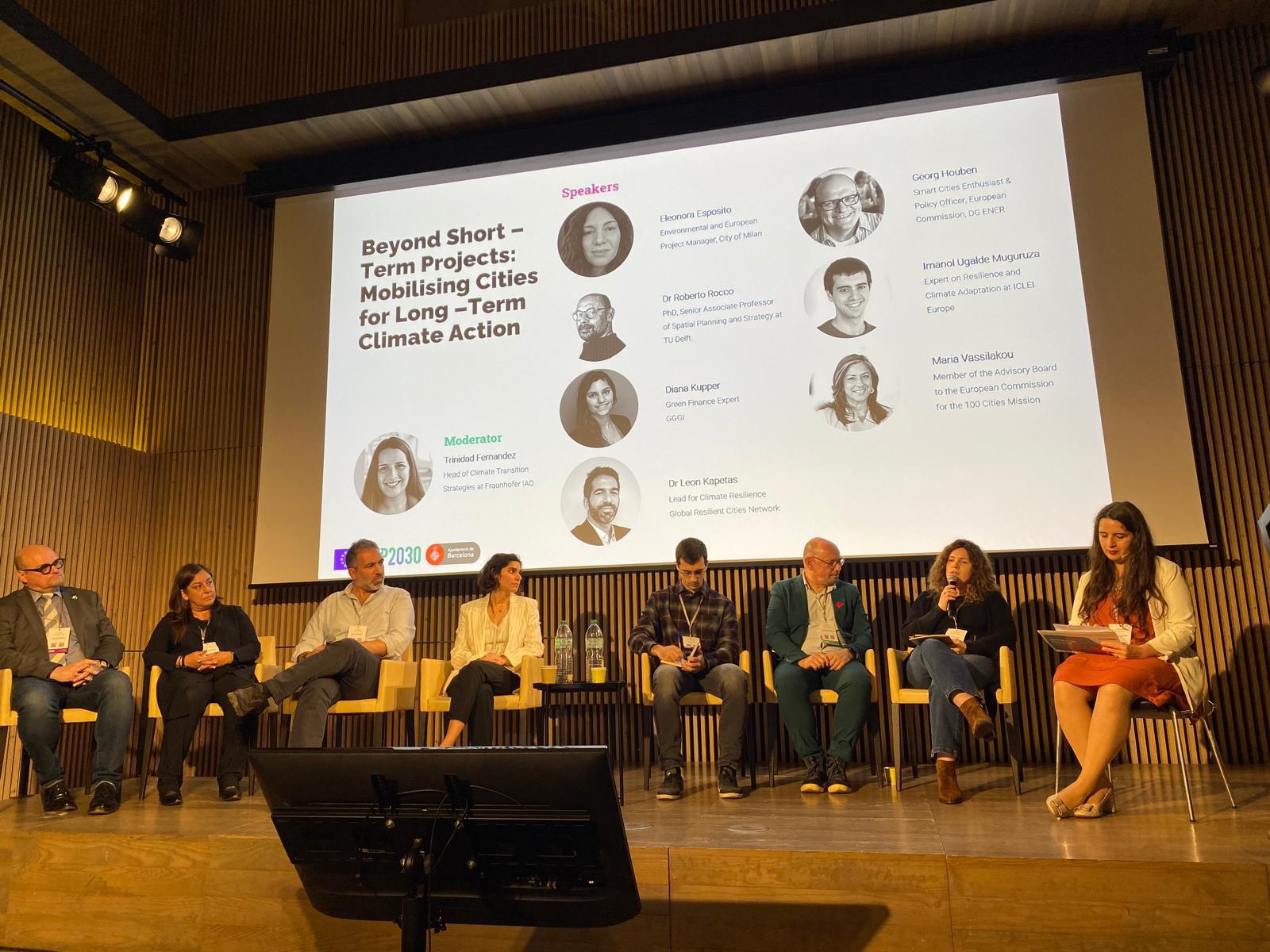 Durante el acto, Granollers ha coorganizado con Milán una mesa redonda centrada en la integración de la resiliencia climática en el diseño y la planificación urbanas. El concejal del servicio de Medio Ambiente y Espacios Verdes del Ayuntamiento de Granollers ha introducido la mesa, en la que han participado representantes de los municipios de Viladecans y Cornellà de Llobregat, así como los centros de investigación e innovación del Institut Metròpoli, Tecnalia y Links Foundation. Al finalizar, Granollers ha presentado la Guía para una ciudad más verde y con oportunidades para todos, que incluye la experiencia y el prototipo trabajados en la ciudad.