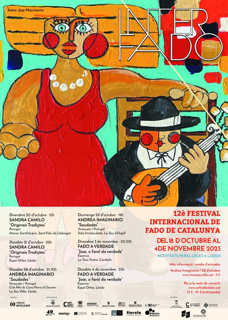 La 12ª edición del Festival Internacional de Fado de Cataluña, organizado por la Fundación Orfeó Lleidatà, con la colaboración especial del Consulado de Portugal en Barcelona, el Ayuntamiento de Lleida, el Institut d'Estudis Ilerdencs, el Institut Català de les Empreses Culturals, el Consorci del Turó de la Seu Vella de Lleida, la Federació d'Ateneus de Catalunya y Supermercados Plusfresc, y bajo la dirección artística de la cantante leridana Carolina Blàvia, tendrá lugar por duodécimo año consecutivo en Lleida, por tercera vez también en La Seu d'Urgell y este año se suman nuevos escenarios en Sant Feliu de Llobregat y Cambrils.