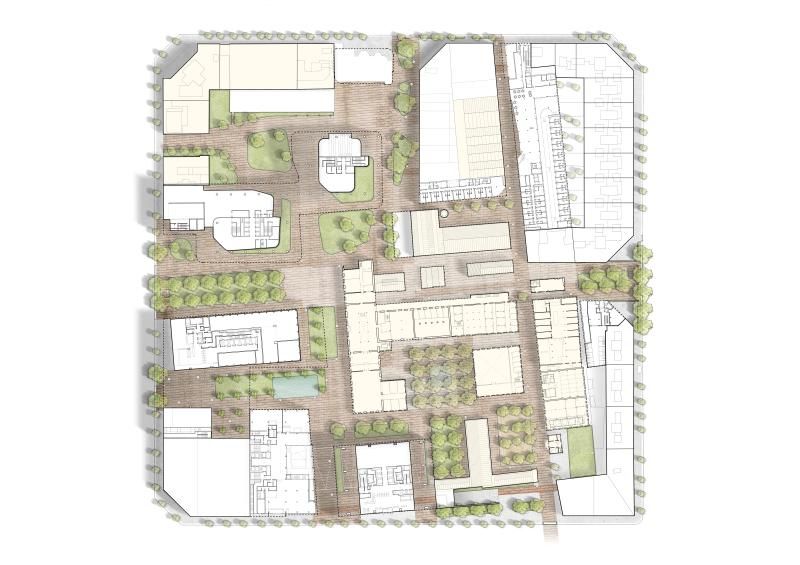La nueva ordenación incluye el espacio que rodea las naves del antiguo recinto industrial y las nuevas edificaciones con fachada a la calle de Bilbao, Marruecos, Perú y al pasaje interior de Emilia Coranty. Se definen recorridos de uso exclusivo para peatones en el interior del recinto a través de los edificios históricos y los de los nuevos usos. Estos itinerarios reconocerán las trazas históricas del recinto y también se crearán nuevas continuidades para conectar bien todos los equipamientos proyectados. En concreto, se prevé la rehabilitación de varios edificios del conjunto de Can Ricart, con los edificios destinados a la Universidad de Barcelona, y otras edificaciones para oficinas y usos municipales. Estos usos se complementan con la construcción de una residencia de estudiantes y de viviendas privadas, además de la promoción existente de vivienda pública en la calle de Bolivia con la calle de Espronceda.