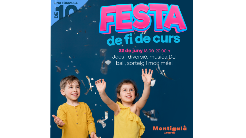 El centro comercial Montigalà celebrará el sábado que viene 22 de junio una gran fiesta de fin de curso destinada a los más pequeños y sus familias, en la que habrá juegos, premios y música.