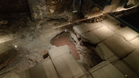 En el subsuelo de la Casa Requesens ha aparecido un pavimento monumental de piedra de Montjuïc, datado en el momento fundacional de la colonia, que pertenece al foro de Barcino.