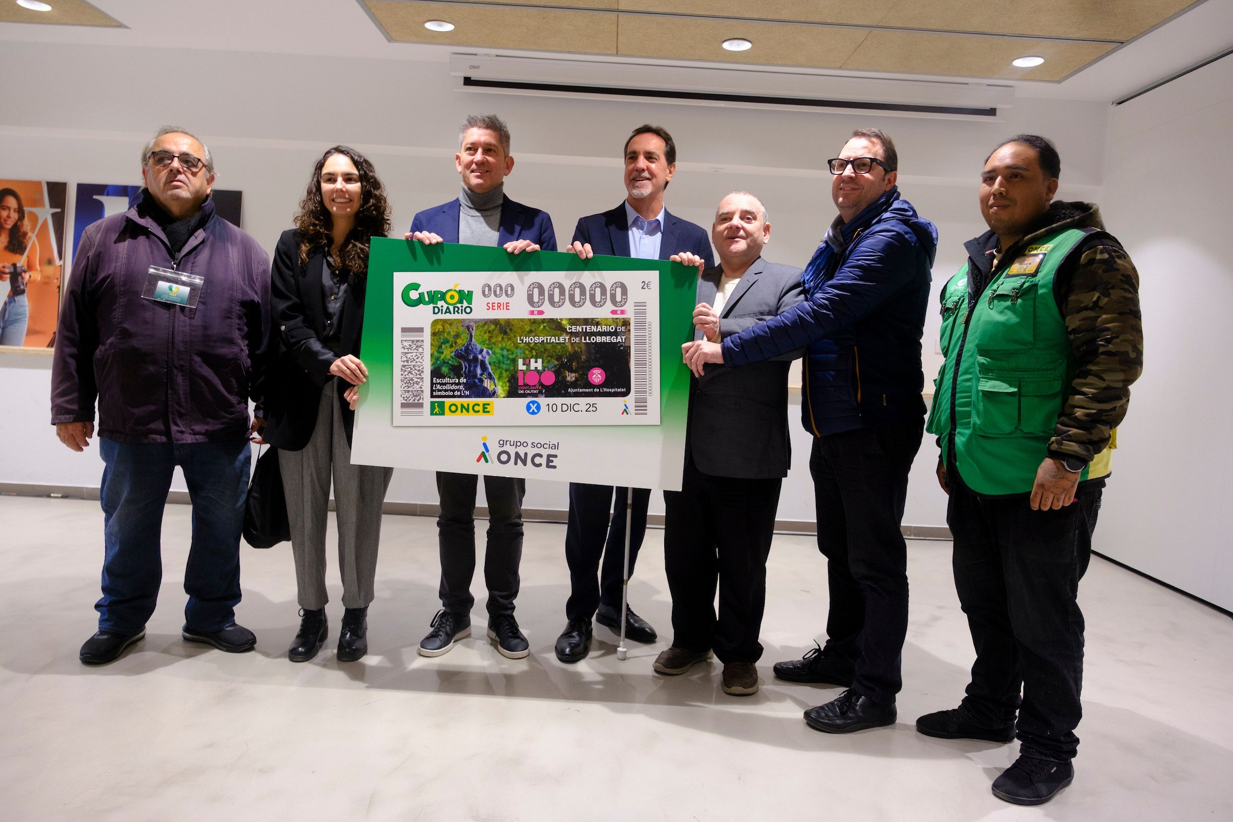 Durante el acto, Enric Botí, delegado de la ONCE en Cataluña, ha entregado a David Quirós, alcalde de L'Hospitalet, una ilustración enmarcada del cupón que lleva como imagen la escultura de la Acollidora, símbolo de la ciudad. También han participado la teniente de alcaldía de Ciudad de Derechos, Laura Garcia Manota, y el director de la ONCE en el municipio.