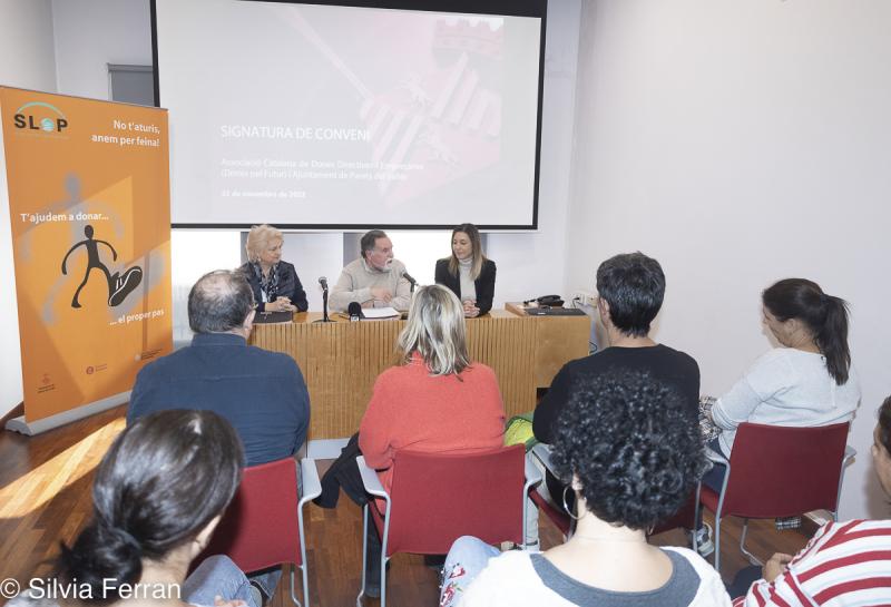 Con la firma del convenio, el Ayuntamiento se compromete a la cesión de una sala para el desarrollo del proyecto de la entidad en el municipio. El proyecto hace referencia al programa de apoyo a las mujeres en los ámbitos rurales y urbanos es un servicio personalizado de orientación profesional y de acompañamiento a la inserción a las mujeres, llevado a cabo por el Servicio Público de Empleo de Cataluña. Esta iniciativa está impulsada por el SOC y financiada por la Unión Europea con los fondos Next Generation.