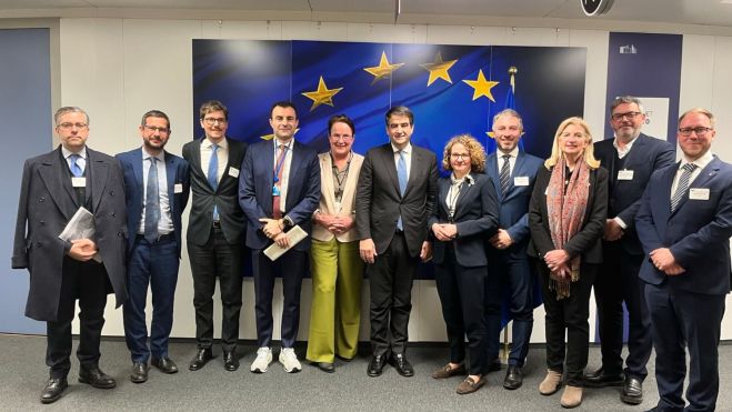 Una representación de la red Autoridades Metropolitanas Europeas (EMA), encabezada por el vicepresidente de Internacional y Metrópolis Digital del Área Metropolitana de Barcelona (AMB), Jordi Castellana, ha mantenido este martes un encuentro con el vicepresidente ejecutivo de Cohesión y Reformas, Raffaele Fitto, en Bruselas.