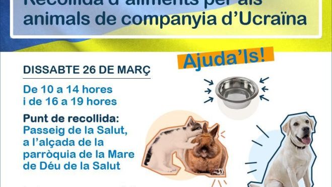 El punto de recogida se instalará el sábado en el paseo de La Salut, a la altura de la parroquia de la Mare de Déu de la Salut. El horario de recogida de alimentos para los animales de compañía de Ucrania irá de 10 a 14 horas y de 16 a 19 horas.