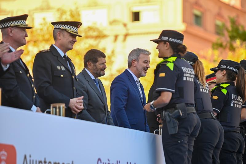 El acto ha sido presidido por el alcalde de Barcelona, Jaume Collboni, acompañado por el teniente de la alcaldía de Seguridad, Prevención, Convivencia y Régimen Interior, Albert Batlle, y el Jefe de la Guardia Urbana, el Intendente Mayor, Pedro Velázquez. Al acto también ha asistido el director general de los Mossos d’Esquadra, Pere Ferrer.
