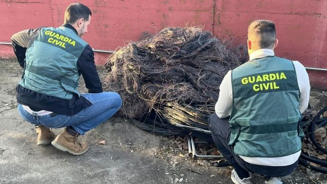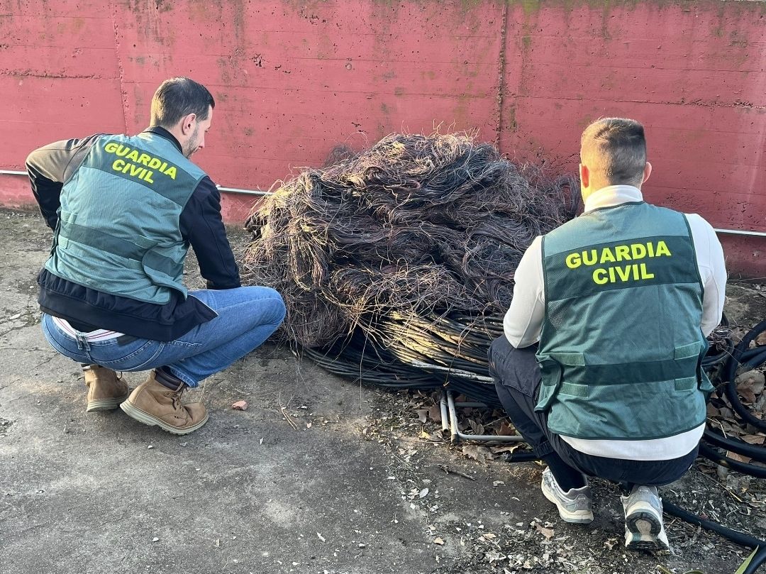 La Guardia Civil ha detenido a tres hombres, con edades comprendidas entre los 26 y los 33 años, residentes en Barcelona, como presuntos responsables de un delito de robo con fuerza y pertenencia a grupo criminal. Los arrestos se efectuaron después de un control rutinario por parte de una patrulla de Tráfico que detuvo el vehículo donde circulaban los sospechosos, detectando que transportaban 540 kilos de cableado sustraído.