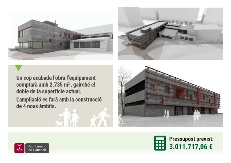 Estas obras de ampliación suponen una importante inversión de 3 millones de euros y consisten en la construcción de 4 volúmenes nuevos, lo que supone un incremento de casi el doble de la superficie actual.El nuevo equipamiento tendrá 2.735 m² y tal y como ha querido recalcar la alcaldesa Farrés, las obras se están llevando a cabo "bajo estrictos criterios de sostenibilidad y eficiencia energética".