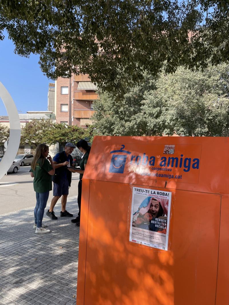 Terrassa tiene contenedores naranjas desde el año 2012 y, actualmente, cuenta con una red de 120 recipientes que gestiona Formación y Trabajo, Empresa de Inserción S.L., entidad que trabaja para la integración social, el desarrollo personal y la sostenibilidad. El material que recogen lo separan y clasifican, de forma que lo que está en peores condiciones se recicla para obtener nuevas fibras y, el resto, lo clasifican para que puedan ser reutilizados.