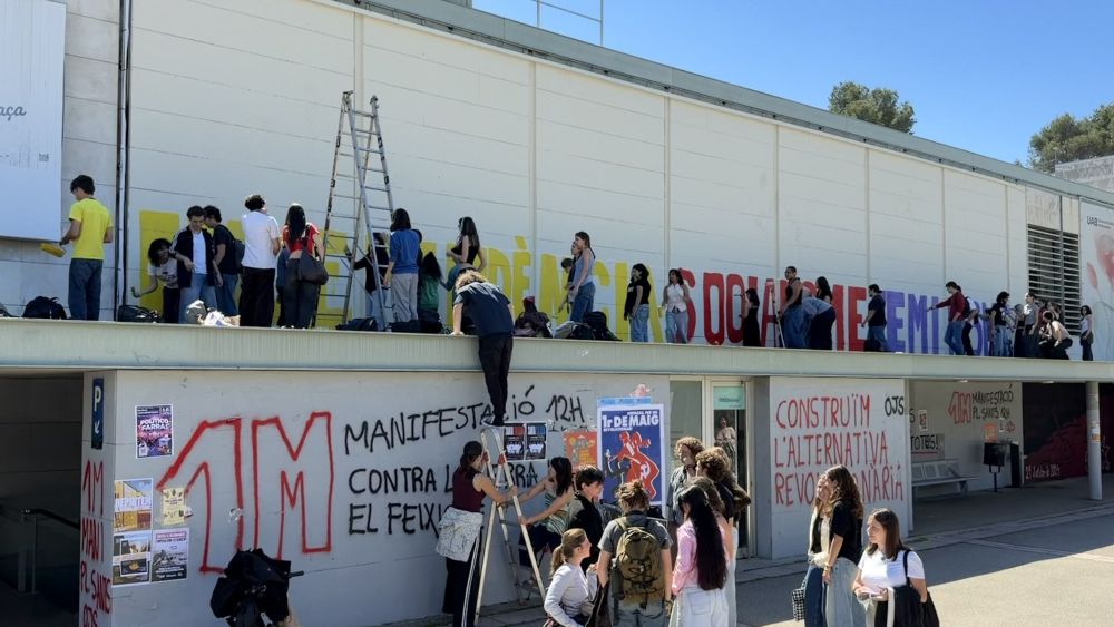 "El mural es el símbolo de nuestras luchas por un futuro libre", ha detallado la portavoz del colectivo, Aina Graell. La acción se ha llevado a cabo a pesar de que desde el Rectorado se ha intentado que no se hiciera, con una conversación previa con los responsables del movimiento.