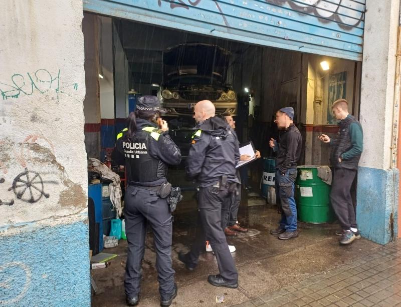 La Guardia Urbana de Badalona realizó la semana pasada una actuación en un taller mecánico de la Avenida Sant Salvador, en el barrio de Artigas, en colaboración con el Cuerpo Nacional de Policía, Inspección de Trabajo y los Mossos d'Esquadra.