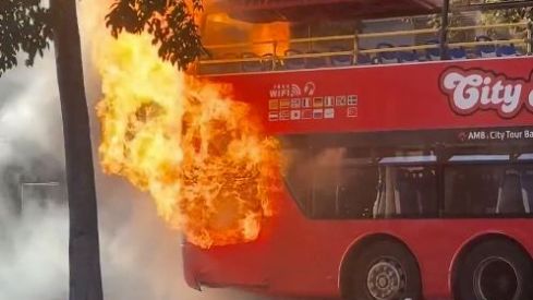 Este viernes por la tarde, un autobús turístico de la compañía City Tour se ha incendiado en la calle Rosselló con avenida Diagonal, justo delante de la Casa de les Punxes, generando una gran columna de humo negro visible desde varios puntos de la ciudad.