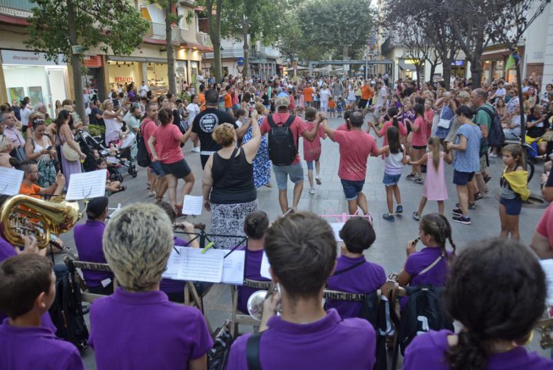 Se trata de un tipo de baile que ya se hace en Tossa y Lloret, y desde hace unos años el esbart lo ha adaptado para hacer una 'versión blanenca'. Para poder bailar el 'Toquen a Correr', alternada con piezas de sardana, la música en directo la interpretó la Banda y Cobla del Colegio Santa Maria. El público aceptó la invitación de bailar en medio de la plaza, ayudados en algunos casos por los chicos y chicas del Cuerpo de Danza del Esbart Joaquim Ruyra, así como por los miembros de las entidades que habían participado en el pasacalle.