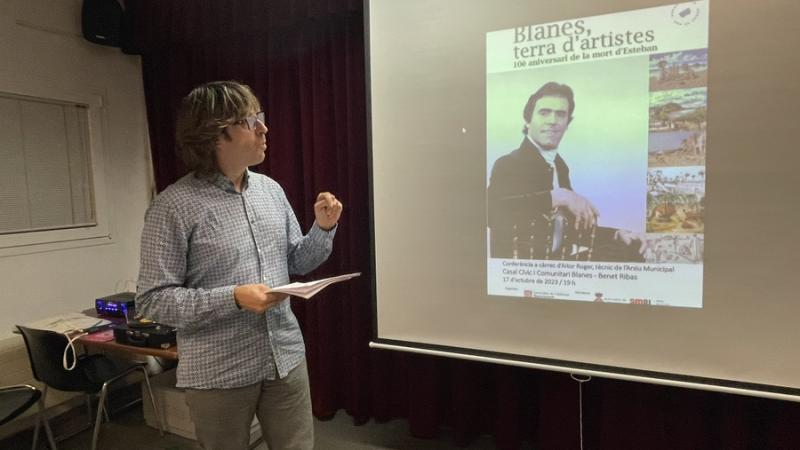 Se trataba de una charla a cargo del historiador blanense y técnico del Archivo Municipal, Aitor Roger. Si bien el título de la conferencia era 'Blanes, tierra de artistas', la segunda parte quedó centrada íntegramente en recordar tanto su trayectoria vital como artística, después de que en primer lugar se habló de artistas tanto de Blanes como de fuera que desarrollaron su carrera en el municipio.