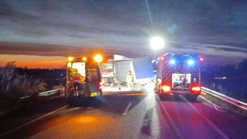 Esta mañana, alrededor de las seis y cuarto, un tráiler y una furgoneta han sufrido una colisión frontal en la N-II, quedando uno de los conductores herido muy grave. Los hechos han tenido lugar a la altura de Cabanes, a escasos metros del término de Vilabertran y los profesionales de emergencias se han desplazado rápidamente hasta el lugar de los hechos para atender a los afectados.