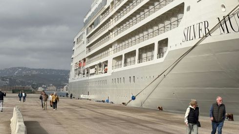 A las ocho de la mañana, el Silver Muse ha atracado en Palamós con sus 583 pasajeros procedentes de Palma. El barco permanecerá hasta las siete de la tarde antes de emprender ruta hacia Barcelona, destino final del viaje. Esta parada es la primera de un conjunto de 74 que se repartirán durante el año entre los dos puertos, donde predomina claramente Palamós como puerto de atraque directo, mientras que Roses acogerá los cruceros que deberán fondear.