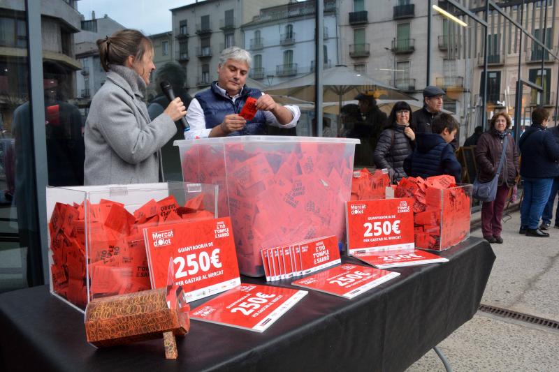 Este viernes 5 de enero a las 12 h del mediodía ha tenido lugar un año más el sorteo de la campaña de Navidad que lleva a cabo el Mercat d’Olot, llamada «Esta Navidad, el Tió te llena la bolsa» y que ha congregado a un numeroso público.