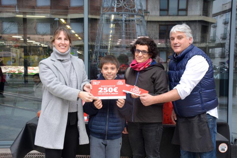 Anna Farjas de Olot; Àngels Planella de Olot; Benvinguda Vencedoz de Olot; Rafa Fuentes de Avinyó; Tura Matemala de Begudà; Maria Teresa Daró de Olot; Assumpció Quintana y Anicet Reixach de Olot han sido los ganadores de los premios de la campaña de Navidad del Mercat. Cada uno ha obtenido 250 euros desglosados en varios vales de 10, 20, 50 y 100 euros que podrán canjear y gastar en las paradas del Mercat d’Olot hasta el mes de abril.