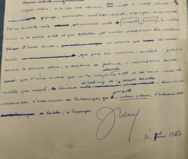 En 2019, la familia Vicens hizo una nueva donación a la Biblioteca, entre la que destaca la correspondencia del historiador, con unas tres mil cartas que permiten acercarse a su trabajo de investigador e intelectual, a su trabajo editorial y a su labor como profesor. También desvelan la actividad de Vicens para renovar la investigación histórica y constatan la amplia red de contactos que estableció con las figuras más importantes de la historiografía internacional y con los personajes que marcaron la vida intelectual y cultural del país entre la posguerra y los años sesenta.