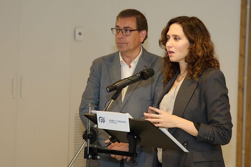 Veray, junto con la presidenta de la Comunidad de Madrid, Isabel Díaz Ayuso, ha mantenido una reunión con empresarios de la hostelería y la restauración de las comarcas gerundenses en el hotel Ciutat de Girona.