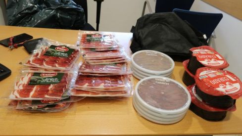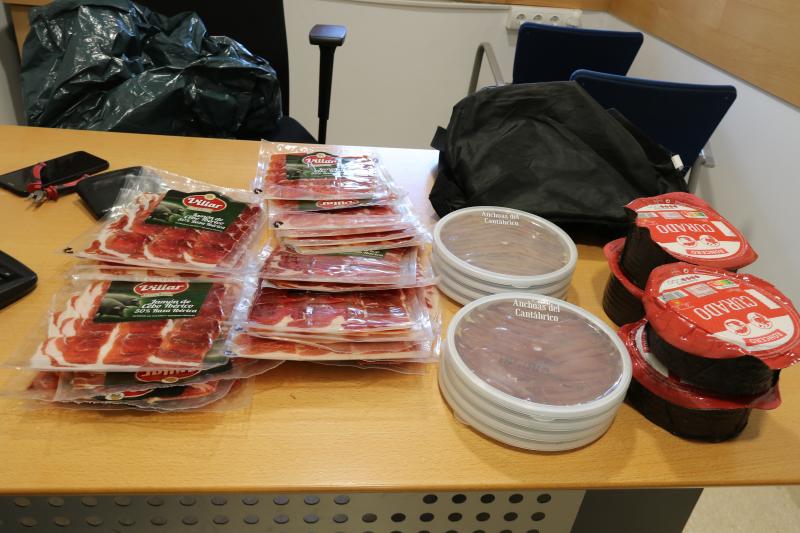Los policías de Platja d'Aro le han encontrado una bolsa con una veintena de paquetes de jamón serrano, cuatro quesos enteros y varias cajas de anchoas. La bolsa estaba forrada con aluminio para evitar las alarmas de los supermercados. También le han encontrado unas pequeñas alicates que habitualmente se utilizan para cortar las alarmas de los productos. Ante la sospecha de que podían ser productos robados, los policías se han llevado al hombre a comisaría.