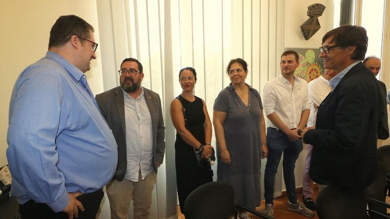El jefe de la oposición en el Parlamento de Cataluña, Salvador Illa, ha visitado esta mañana Blanes, formando parte de un recorrido por diversas poblaciones de la Costa Brava Sur y el Maresme. El periplo ha comenzado en el Ayuntamiento de Blanes, donde ha sido recibido por el alcalde, Jordi Hernández, acompañado de miembros del equipo de gobierno.