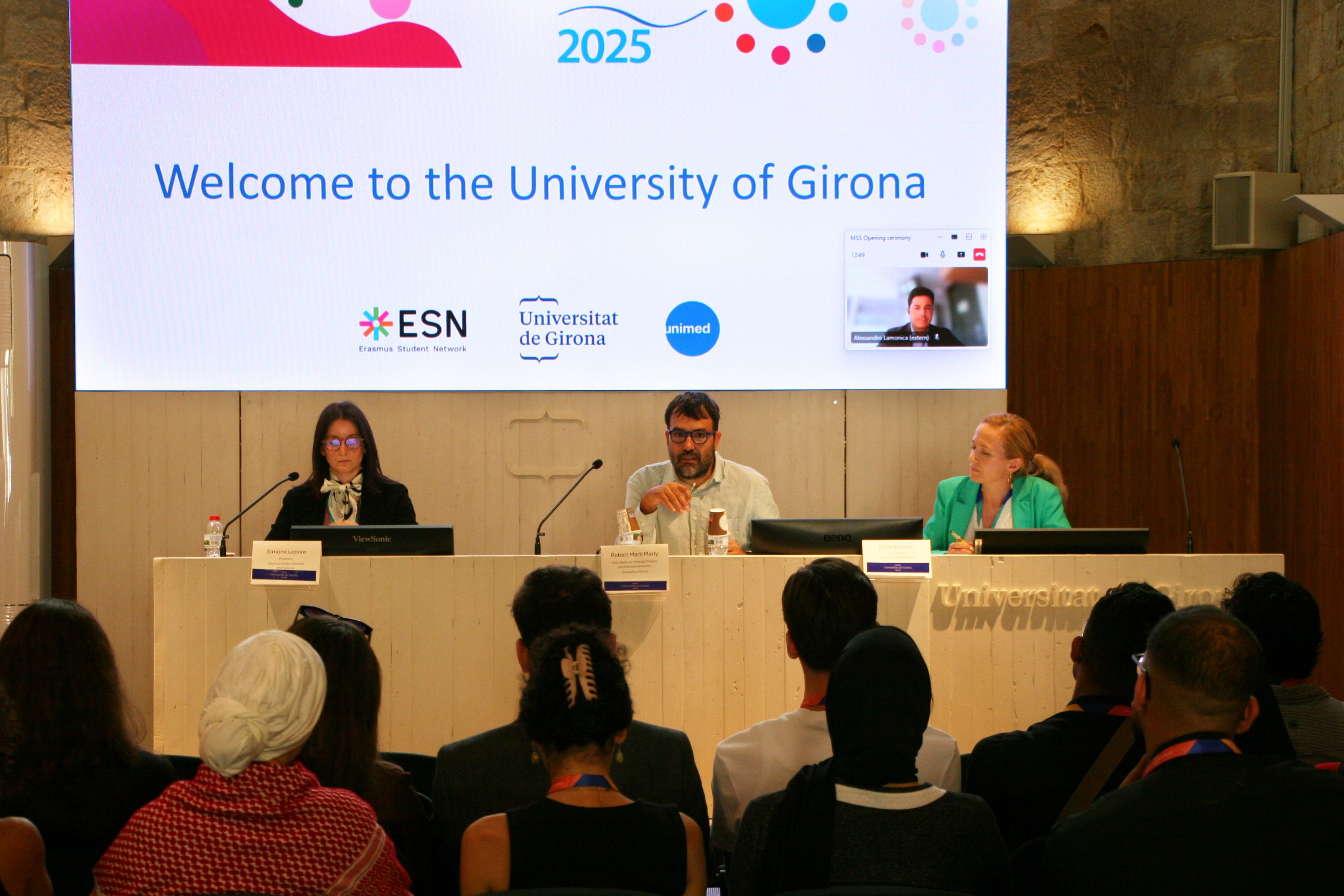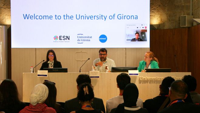 La Universidad de Girona (UdG) ha acogido, del 1 al 3 de octubre, la cuarta edición de la Mediterranean Student Summit (MSS), un encuentro internacional organizado por la red de universidades UNIMED – Mediterranean Universities Union y el Erasmus Student Network (ESN). El congreso, que ha reunido a más de cuarenta estudiantes de universidades de la orilla norte y sur del Mediterráneo, ha abordado el papel de los estudiantes en el diálogo entre la academia y la sociedad civil y ha contado con una destacada participación de la UdG en debates, ponencias y actividades de networking.