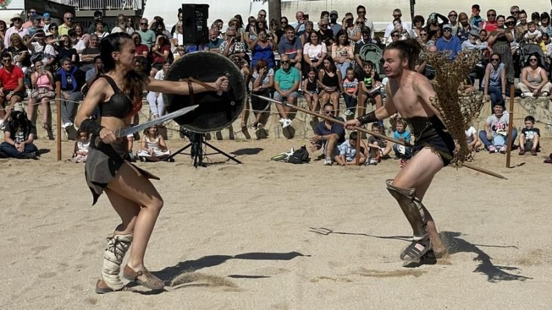 Así, desde el viernes por la tarde y durante todo el fin de semana, el Espacio Arena ha acogido espectáculos como 'Conspiracion: Sangre y Arena' con gladiadores y nobleza romana, 'Los Viajes de Dakarai' con bailarinas, o bien una Exhibición Militar de soldados romanos con la Legio V Macedónica de los Manaies de Blanes. La noche del sábado también acogió el espectáculo de fuego y efectos pirotécnicos 'Splendia' y la tarde del domingo otra novedad: 'Bailamos en la Arena', donde el animador Juli entretuvo a pequeños y mayores.