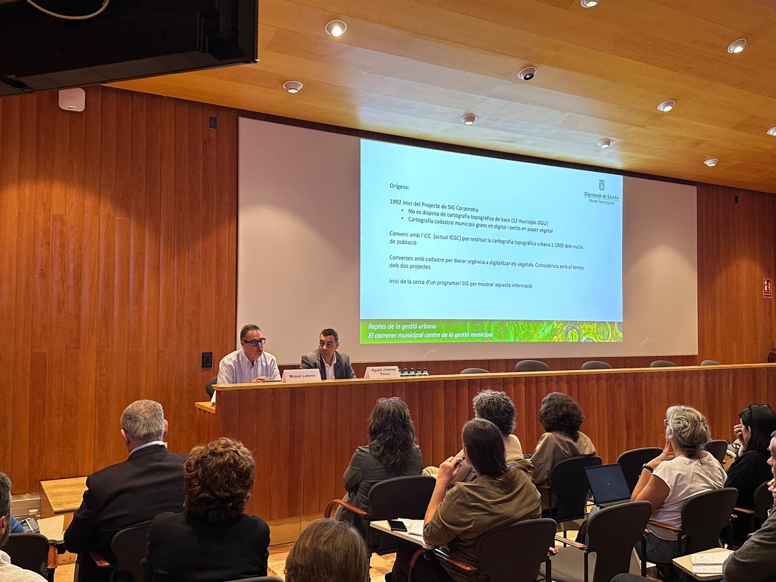 Este miércoles, el vicepresidente de la Diputación de Lleida, Agustí Jiménez, ha participado en la Jornada ‘Retos de la gestión urbana’, organizada por el Institut Cartogràfic i Geològic de Catalunya (ICGC), donde ha subrayado la importancia de la transformación digital en la gestión de los municipios. Jiménez ha destacado la labor del área de Nuevas Tecnologías en la implementación del Sistema de Información Geográfica (SIG), una herramienta que facilita la ordenación y visualización eficiente de los municipios y que ha sido clave en la digitalización de los callejeros de la demarcación.