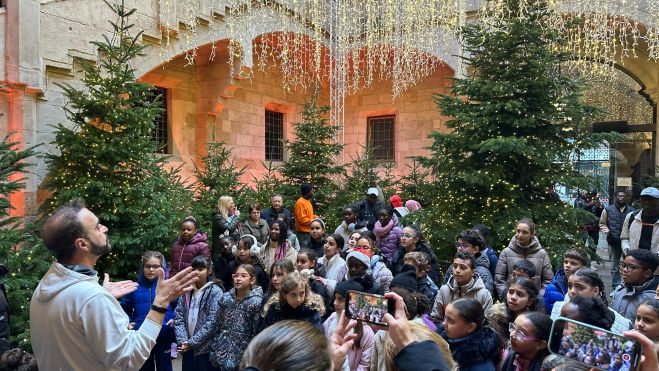 Un año más, el Patio del Institut d’Estudis Ilerdencs respira el ambiente más festivo con las actuaciones del Temps de Nadales, una iniciativa que invita a la ciudadanía a cantar villancicos en un entorno singular como es la instalación navideña ‘Un bosc de llum’. Este martes, alumnos de las escuelas Camps Elisis y Sant Jaume han interpretado diversos villancicos, mientras que mañana miércoles será el turno de la escuela Santa Anna.