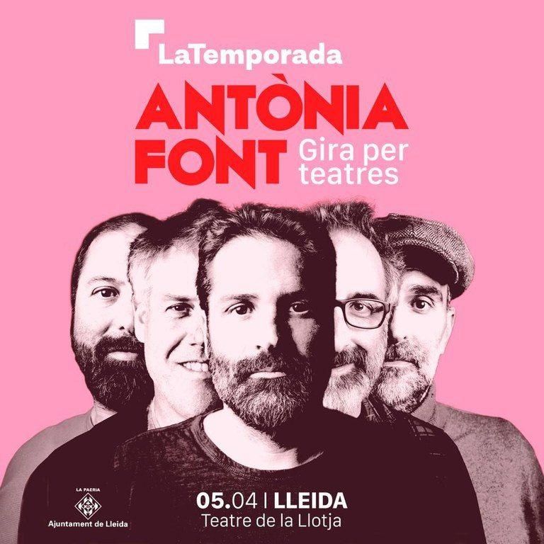 El grupo mallorquín Antònia Font subirá al escenario del Teatre de la Llotja el viernes 5 de abril de 2024. El concierto se incluye en su gira de teatros y auditorios prevista para el año que viene y formará parte de la programación de LaTemporada Lleida.