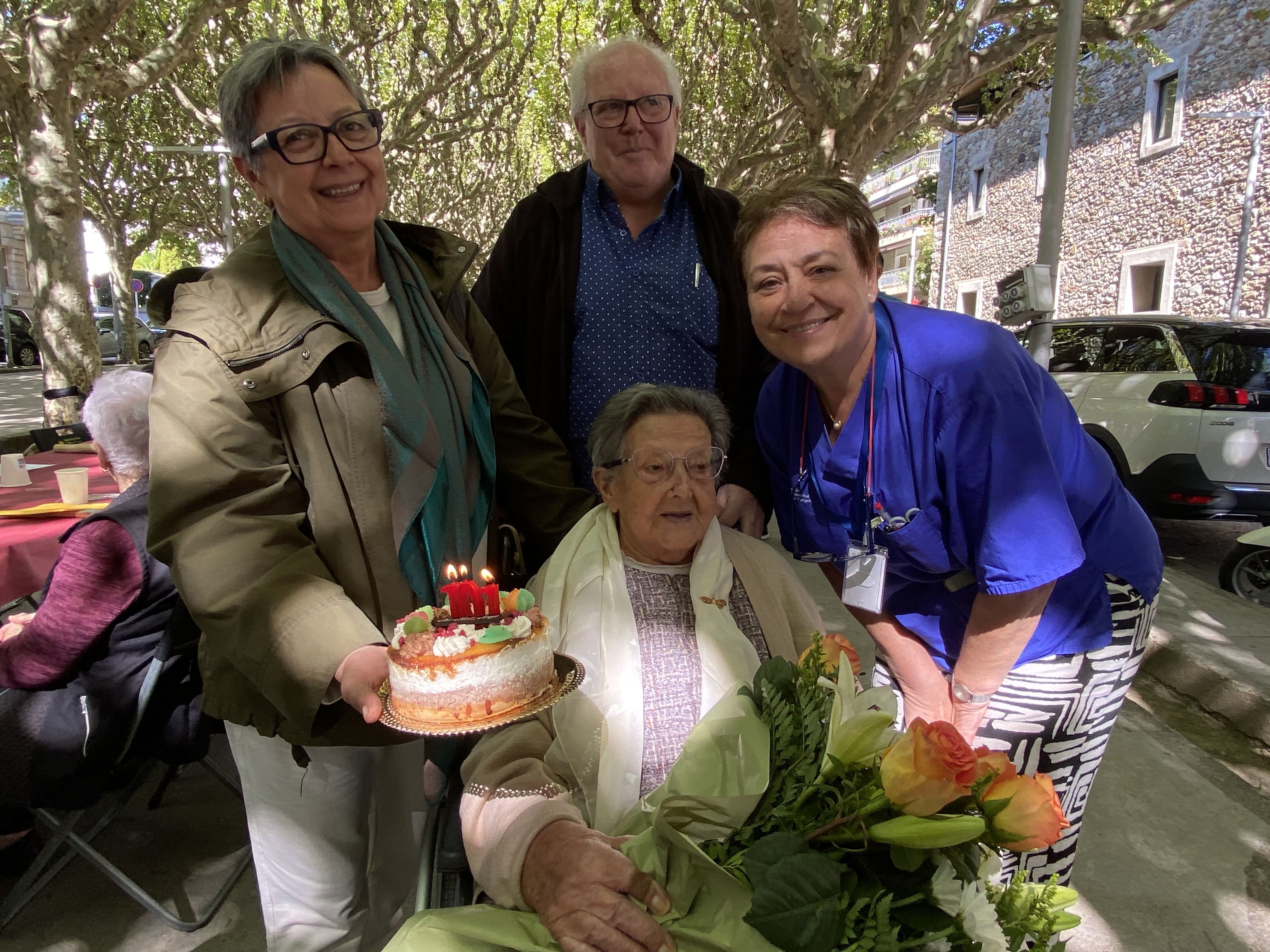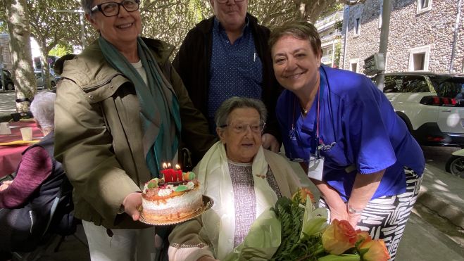 Rosa Barral, que vive en el centro sociosanitario de la Fundación Sant Hospital, ha estado acompañada en esta celebración por dos de sus hijos, así como por el personal asistencial y otros usuarios y usuarias de este centro residencial para personas mayores.