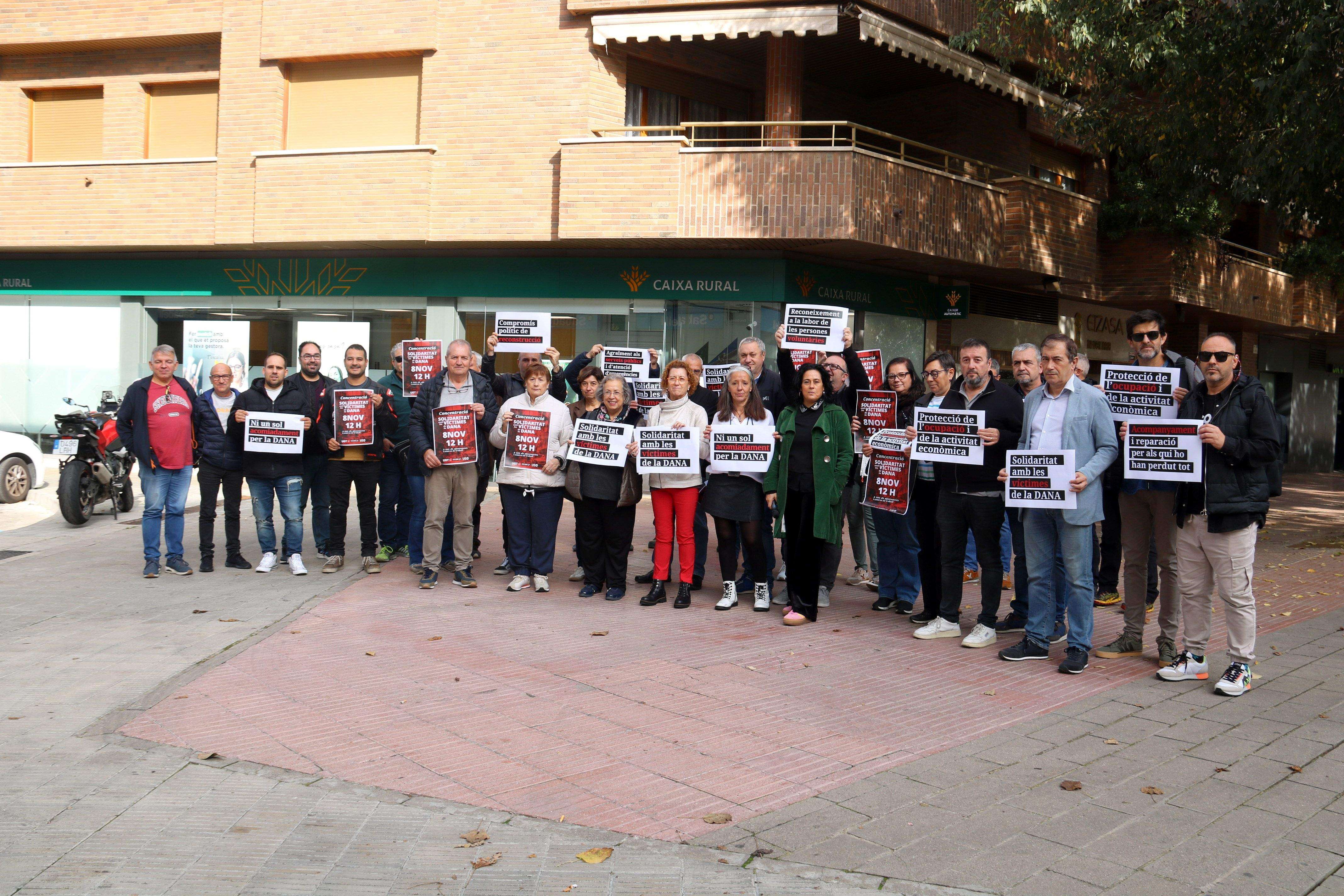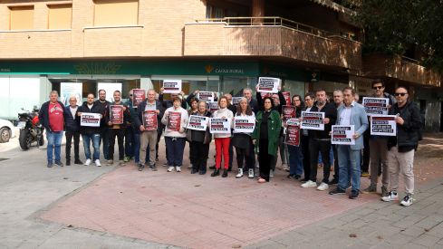 Una treintena de personas se han concentrado a las doce del mediodía frente a la sede de CCOO en la calle Enric Granados de Lleida para mostrar su apoyo a las personas que han perdido su patrimonio y ven comprometida la viabilidad de sus negocios o peligrar su puesto de trabajo.