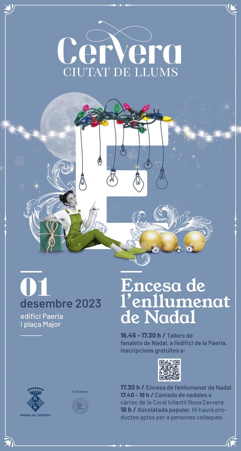 El acto de encendido será el viernes 1 de diciembre, a las 17.30 horas. Se complementa con un taller previo gratuito de elaboración de farolillos de Navidad, que se realizará en la Paeria. Después del encendido habrá un canto de villancicos con la Coral infantil Nova Cervera y una chocolatada popular.