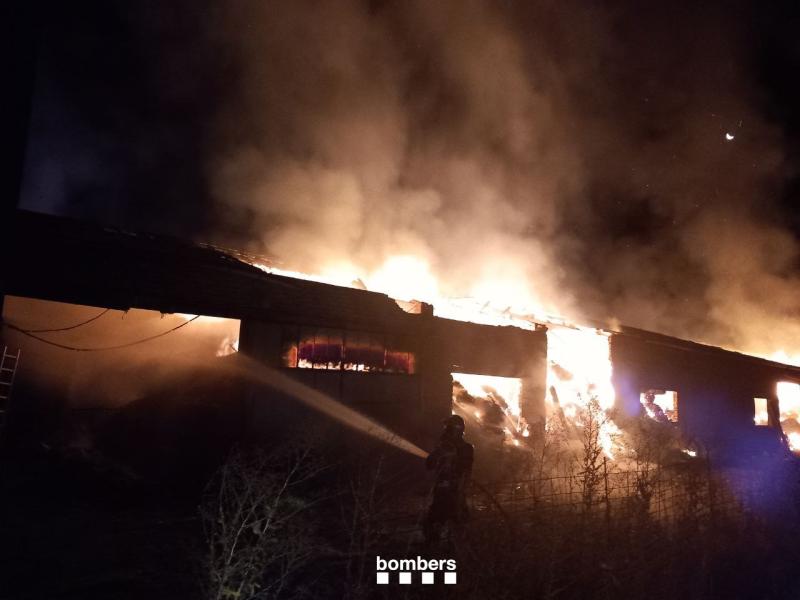 El fuego afecta a un pajar, que ha perdido la cubierta después de colapsar a consecuencia del fuego, y maquinaria adyacente. Los Bomberos han priorizado proteger la casa que hay al lado del incendio para evitar que se propague.