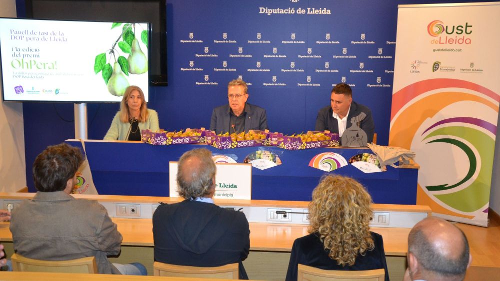 El acto, celebrado en la Diputación, también ha contado con la participación del diputado y vicepresidente del Patronato de Promoción Económica, Jordi Verdú, y del diputado Joan Simeón, así como de una representación de los miembros del Consejo Regulador de la DOP Pera de Lleida.