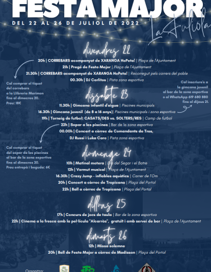 Del 22 al 26 de julio podréis disfrutar de un amplio abanico de actos.