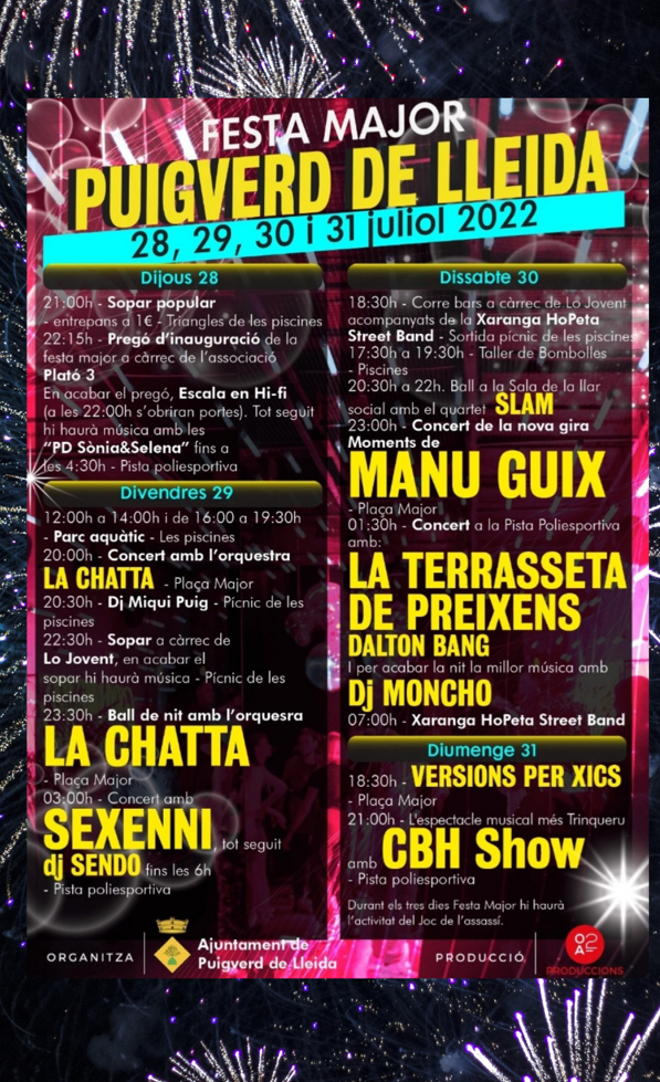 La Fiesta Mayor de Puigverd de Lleida 2022 ofrecerá actividades para todos los públicos del 28 al 31 de julio. 4 días con actividades para todas las edades y gustos.