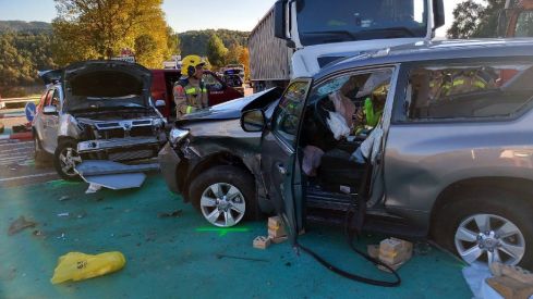 Según han informado los Bomberos de la Generalitat, el aviso se ha recibido a las 15.32 h y hasta el lugar de los hechos se han desplazado seis dotaciones del cuerpo. Los efectivos han tenido que excarcelar a una persona que había quedado atrapada dentro de uno de los vehículos, mientras que dos más, ocupantes de otro coche, han sido atendidas por el Sistema de Emergencias Médicas (SEM).