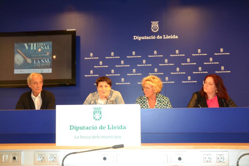 La diputada Estefania Rufach; la alcaldesa de les Avellanes i Santa Linya, Lídia Ber, y los concejales, Anna Belén y Jordi Prieto, han participado este martes en la presentación de la 7ª Feria de la Sal ‘La sal y los sentidos’, que se celebrará en el municipio de les Avellanes i Santa Linya, el día 29 de octubre.