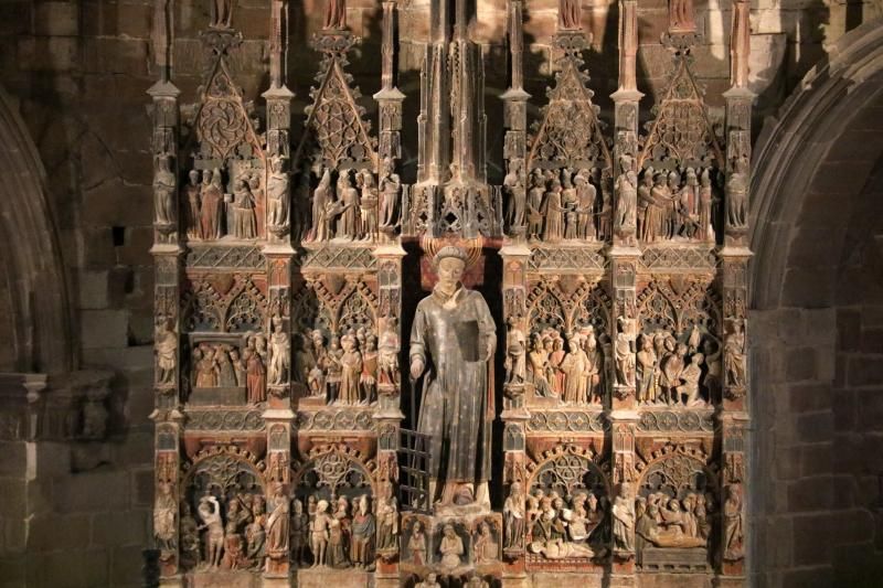 El interior guarda importantes obras de escultura gótica, especialmente imágenes y retablos de piedra propios del templo y de otras procedencias, entre otros el retablo de Santa Úrsula, que se ha restaurado.