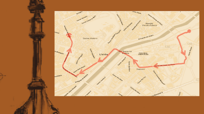 La comitiva, formada por carrozas y animales, seguirá el siguiente itinerario: recinto de las Ferias (camino de Granyana), avenida Victoriano Muñoz, rotonda del camino de Picos, calle del Camino de Picos, avenida de Alicante, avenida de las Garrigues, puente Viejo, avenida de Blondel, avenida de Cataluña, rambla de Aragón y avenida Balmes, hasta llegar a la Cruz de los Tres Tombs, donde se realizarán las tres vueltas tradicionales al monumento.