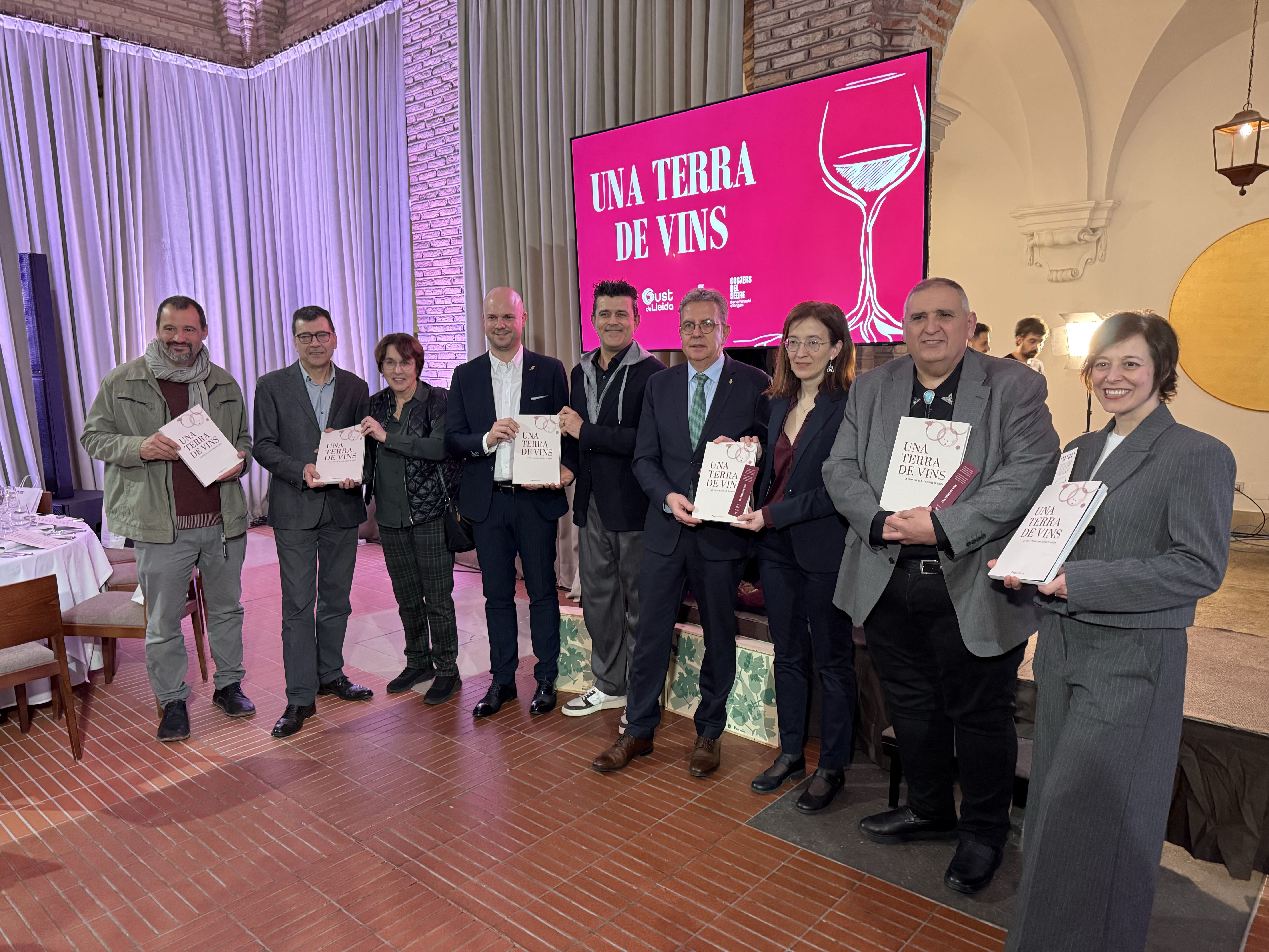El Parador de Lleida ha acogido este jueves la presentación del libro Una tierra de vinos (Pagès Editors), una obra que recorre la identidad vitivinícola de las tierras de Ponent, el Alt Pirineu y el Aran. El acto ha reunido a más de un centenar de personas entre autoridades, representantes de bodegas, autores, miembros de diferentes denominaciones de origen catalanas y prescriptores del sector del vino.