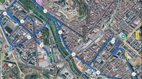 - Campos Elíseos “Pabellón Ferial 3” – avenida Alicante – avenida Valencia – calle Río Ebro – avenida Doctora Castells – avenida Garrigues – avenida Barcelona – avenida Estudio General – calle Doctora Castells (ida y vuelta) – avenida Estudio General – Puente Universidad - plaza de España - Avenidas Madrid y Blondel - Puente Viejo - Avenidas Garrigues y Alicante - Campos Elíseos “Pabellón Ferial 3”.