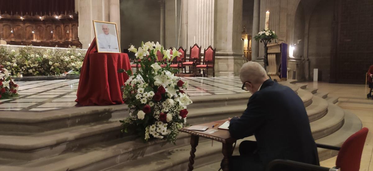 Desde el miércoles, día 23 de abril, el obispado colocó un libro de condolencia en la catedral de la ciudad para que quien lo quiera pudiera expresar su condolencia o agradecimiento. El párroco jefe, Fèlix Larrosa, lo ha firmado hoy con el siguiente mensaje: "En nombre de la ciudad de Lleida, como Paer en cap, quiero trasladar mi condolencia a la Comunidad Católica. Te echamos en falta. Félix Larrosa".